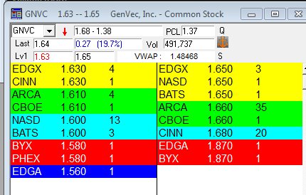 GNVC  = Model went long 3,000 shares at $1.53 - stock is currently $1.65 - high $1.68 (see image) up 8%