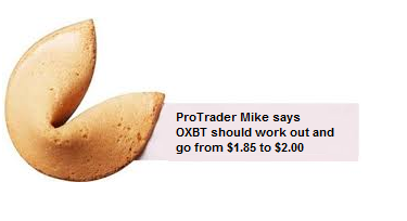 Oxygen Biotheraputics (OXBT) =   the MOJO Day Trade room has traded this stock today and the high was $2.45 and the low was $1.80. MOJO Day Traders have printed both the high and the low. I have seen these moves before. There is a little more risk but the upside is real nice.