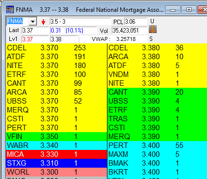 FNMA =   Model has 10,000 shares at $3.30 average - First target has been reached - selling half here $3.40 - Last Price $3.38 - Let's take half now and half later in the day stop on second half $3.33