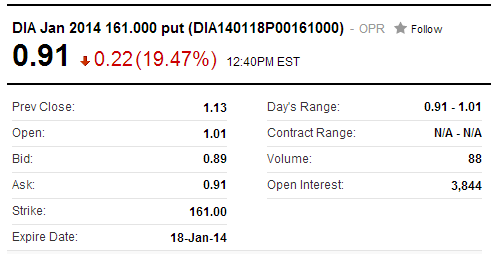 DIA PUTS $161 Strike Price Jan 18th Expire = Picking up 50 of them at $.90 range - Yahoo Quote =