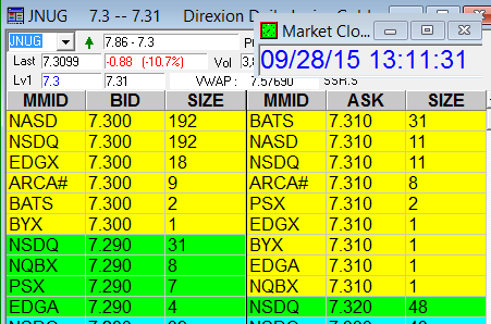 Direxion Daily Junior Gold Miners (JNUG) = Currently holding at $7.75 with $8.00 Covered calls sold for $1.00 - the stock went to $10.40 on 9/18 - Let's rebuy here (2) Buys and see what it does tomorrow - can play it plain just for profit or do some covered calls. Stay tuned...(See Image)