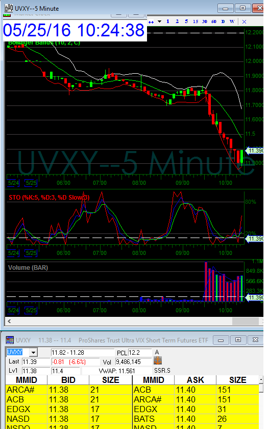 UVXY (UVXY) = Start Buy here and will be selling covered calls on shares. Same 2 buy strategy $11.40< #1 then #2 if lower wait to $11.05< if higher buy into $11.50. (See Image)