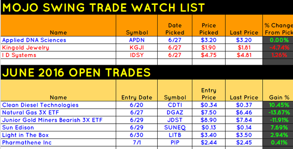 Natural GAS ETF (DGAZ) = Pick from 6/27 Cost $7.50 | Stock soared yesterday and continues this morning Last price $8.18 | MOJO sold from $7.50 HALF at even the rest higher into the close.