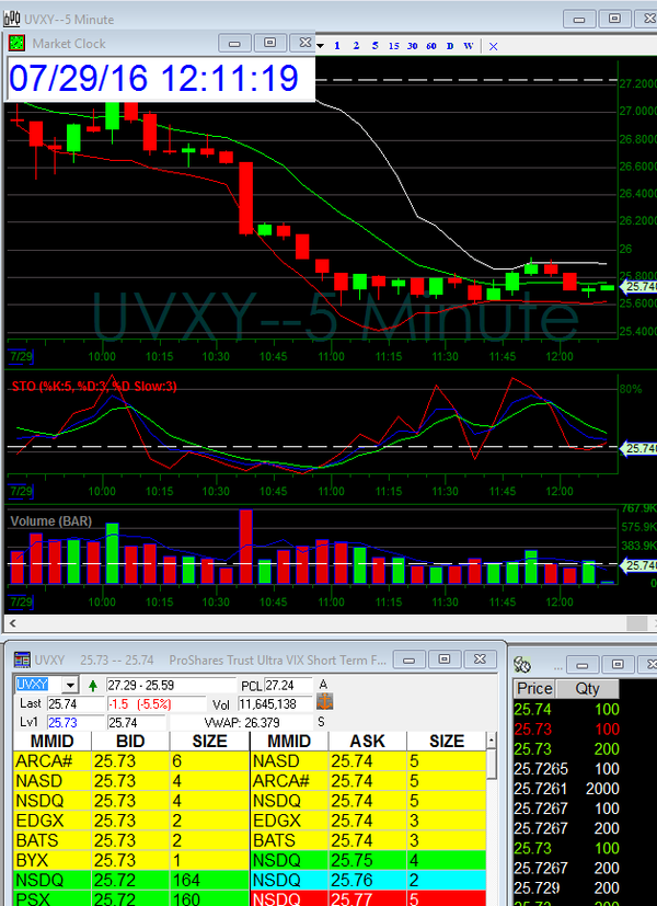 Proshares Trust Ultra VIX Short Term Futures (UVXY) = MOJO cost $32.50 adding here $25.75 to avg $29.00 range and looking next week on recovery to take profits and sell covered calls as the premiums here are HUGE. (See Image)