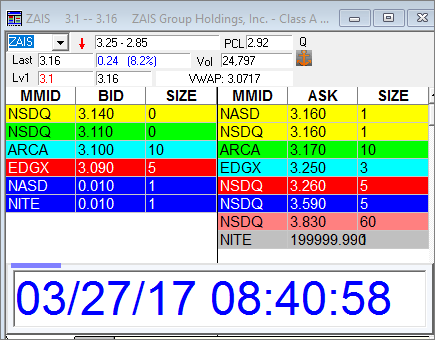 ZAIS = check stock traded heavy volume Friday and should do the same today ... if it gets to $3.30+ it should go test $3.50 ... play only in one direction ... if goes under $2.90 ignore it.