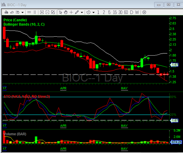 - BIOC = target $1.85 + Last $1.70< Upside $.20 Risk $.07