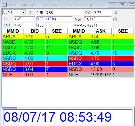 Cleantech Solutions (CLNT) = See Image Stock is a BUY to and thru $4.50 for a HEINZ $5.00 Trade Play with have great momentum and volume today. News out on it. News on the stock here http://ow.ly/YfIO30edFdC