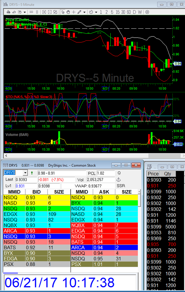 DRYS got stopped out for a loss at $1.25 last week will re-buy for a trade back thru $1.00++ stop $.04 @ $.89 cents.