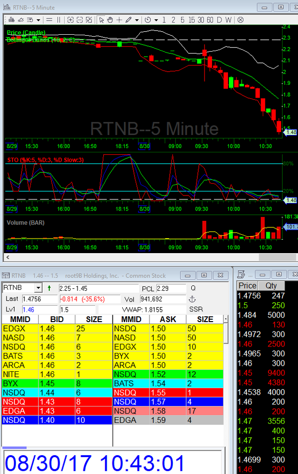 Root9B Holdings (RTNB)Â = See Image looking for rebound back thru $1.50 to $1.80 maybe $2.00. Nothing BIG - one direction only!!
