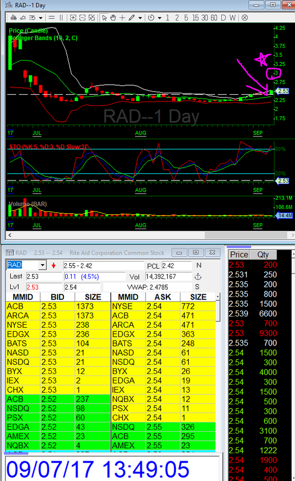 RiteAid (RAD)Â = See Image BUY 2 Strategy here target to $3.00.Â