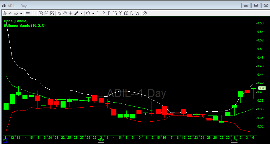 ADIL – $0.40 base, looking for a Mini-Heinz through $0.50. Nice chart + strong volume setup.