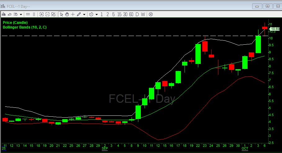 FuelCell (FCEL) – Picked at $5.00, now pushing toward $10+. PLUG & FCEL have always run together.